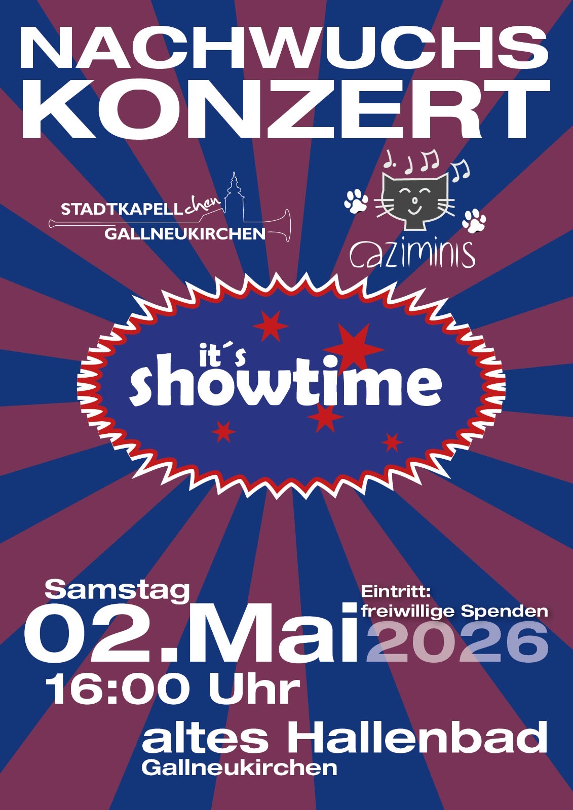 Das Stadtkapellchen spielt gemeinsam mit den Caziminis ein Nachwuchskonzert – die Nachwuchsmusiker:innen präsentieren ihr Können im alten Hallenbad.